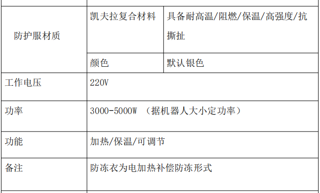 名称:加热机器人防护服